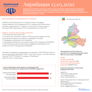13 марта 2020 года на территории Ростовской области проходит тренировочный экзамен