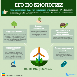 Изменения в структуре и содержании КИМ ЕГЭ 2021 по биологии по сравнению с 2020 годом отсутствуют. Изменилось только время выполнения экзаменационной работы, оно увеличилось с 210 до 235 минут. Установленный минимальный балл на ЕГЭ по биологии составляет 36 баллов. Дополнительные материалы и оборудование не используются.