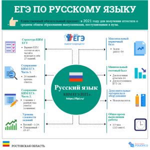 Структура и содержание КИМ ЕГЭ 2021 по русскому языку по сравнению с 2020 годом не изменилась. Все основные характеристики экзаменационной работы сохранены. Изменены формулировка и способ предъявления языкового материала задания 9. Уточнены формулировка задания 27 и критерии оценивания. Изменён первичный балл за выполнение работы с 58 до 59.