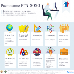 В 2020 году согласно единому расписанию ЕГЭ пройдет в следующие сроки: