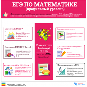 Структура и содержание КИМ ЕГЭ 2021 по математике профильного уровня по сравнению с 2020 годом не изменилась. Все основные характеристики экзаменационной работы сохранены. Профильный экзамен длится 3 часа 55 минут (235 минут). Работа оценивается по стобалльной шкале, установленный минимальный балл по математике профильного уровня – 27. Свои результаты участники ЕГЭ по математике профильного уровня узнают не позднее 23 июня.