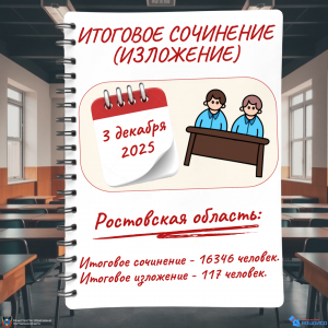Итоговое сочинение (изложение) обучающиеся сдают в своих образовательных организациях, число зарегистрированных на 3 декабря участников – в нашей инфографике.