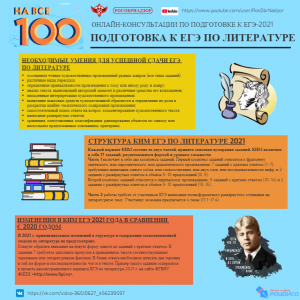 9 октября эфир, посвященный подготовке к ЕГЭ-2021 по литературе, продолжил серию онлайн-консультаций Рособрнадзора от разработчиков экзаменационных материалов ЕГЭ из Федерального института педагогических измерений (ФИПИ).