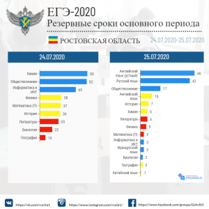 24 июля проходит ЕГЭ по всем учебным предметам, кроме русского языка и иностранных языков, а 25 июля – по всем учебным предметам.