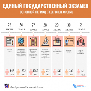 Резервные сроки основного периода ЕГЭ начались 23 июня и завершатся 2 июля. Сдать экзамены в резервные сроки могут выпускники прошлых лет, в том числе желающие улучшить свой результат, выпускники текущего года, пропустившие или не завершившие экзамены в основные сроки по болезни или иной уважительной причине, подтвержденной документально, а также выпускники, не набравшие минимальный балл для получения аттестата по одному из двух обязательных предметов – русскому языку или математике. ⠀