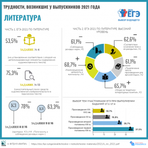 Более подробную информацию об итогах анализа результатов ЕГЭ-2021 по литературе можно найти на сайте ФИПИ, информацию о подготовке к ЕГЭ-2022 по литературе ищите в записи трансляции https://vk.com/video-36510627_456239719.