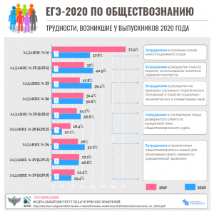 Задания по обществознанию, которые вызвали наибольшие затруднения у участников ЕГЭ-2020, представлены в нашей инфографике.