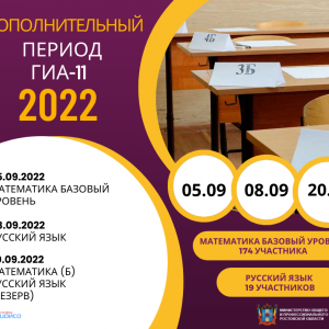 Дополнительный (сентябрьский) период проведения государственной итоговой аттестации по образовательным программам среднего общего образования пройдет с 5 по 20 сентября 2022 года.
