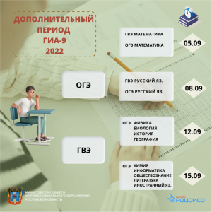5 сентября 2022 года на территории Ростовской области стартовал дополнительный (сентябрьский) период проведения государственной итоговой аттестации по образовательным программам основного общего образования (ГИА-9).
