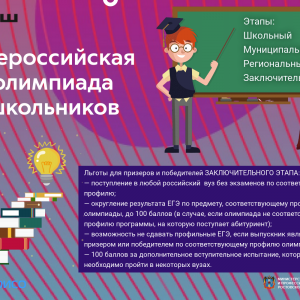 В сентябре стартовал школьный этап всероссийской олимпиады школьников, который продлится до конца октября. Всероссийская олимпиада школьников проводится ежегодно с сентября по июнь. Она включает четыре этапа: школьный, муниципальный, региональный и заключительный. Олимпиада помогает на раннем этапе выявлять одаренных детей для их дальнейшей поддержки, развития и формирования индивидуальной траектории развития. Муниципальный этап олимпиады пройдет в ноябре-декабре, региональный этап – в январе-феврале, заключительный этап – в марте-апреле.