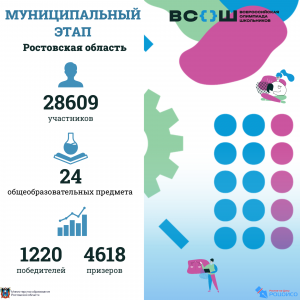 В Ростовской области подведены итоги муниципального этапа всероссийской олимпиады школьников (ВсОШ): из 28609 участников 1220 школьников стали победителями данного этапа по соответствующим предметам, а 4618 – призерами.