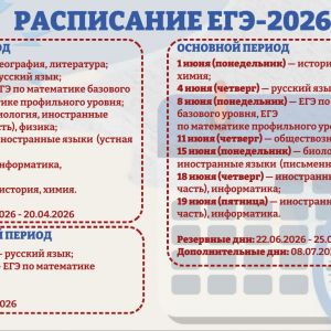 Совместными приказами Минпросвещения России и Рособрнадзора утверждены сроки проведения единого государственного экзамена (ЕГЭ) и государственного выпускного экзамена (ГВЭ) в 2026 году, продолжительность экзаменов по всем учебным предметам, а также перечень дополнительных материалов, которые могут использовать участники на соответствующем экзамене.