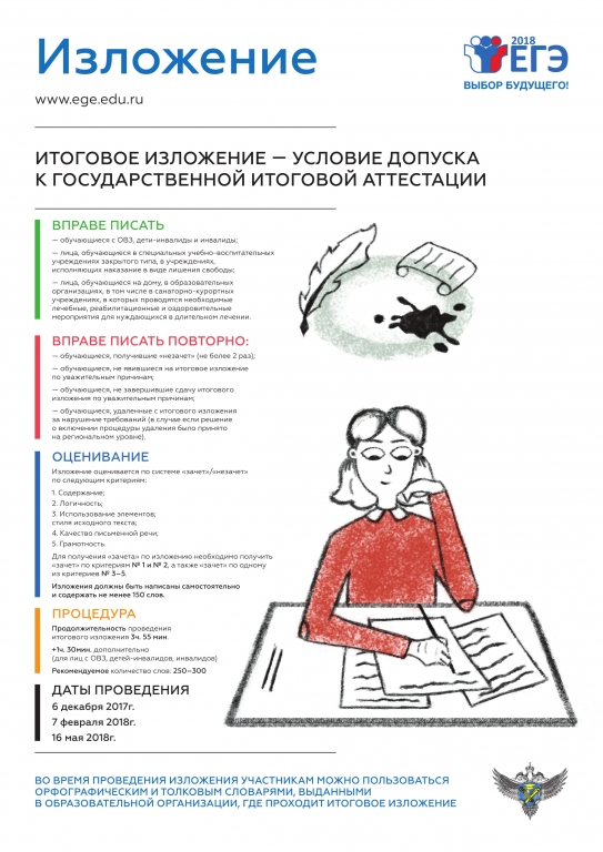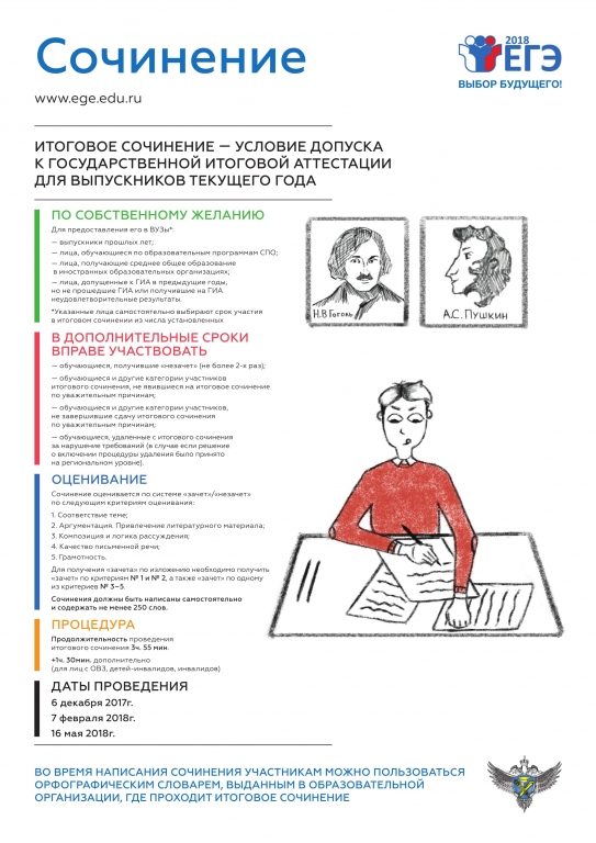 Федеральная служба по надзору в сфере образования и науки подготовила обновленную серию плакатов, посвященных процедурам сдачи единого государственного экзамена, итогового сочинения и изложения.
